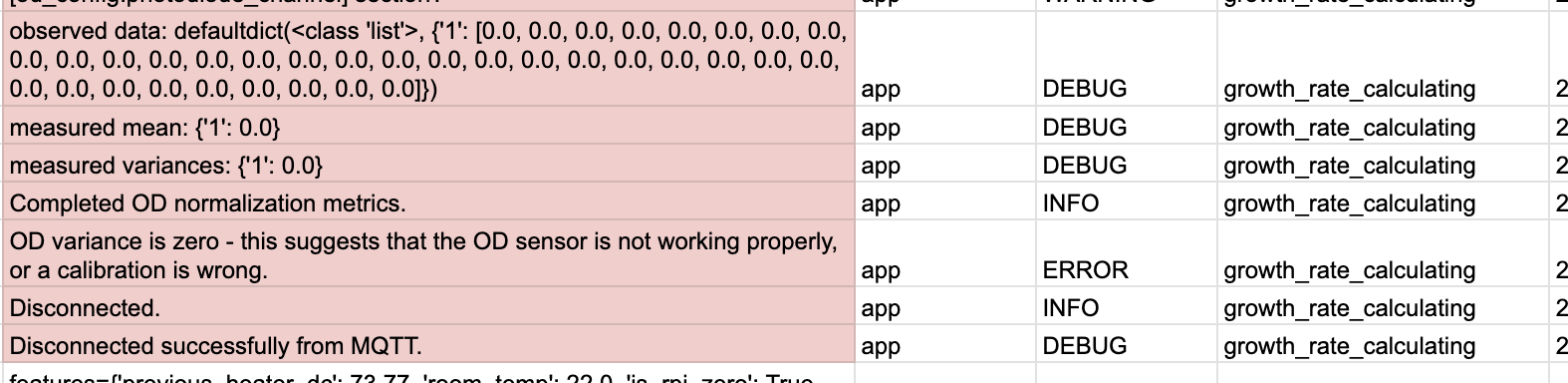But there are some experiments we’re running where the OD starts below the lowest value we’ve calibrated for (e.g. for some reason the media is a slightly different). What’s happening is that we’re starting the OD and growth rate, the OD is below the calibrated range so will now return the minimum OD (thanks for your change yesterday!) and is therefore constant for some time. The growth rate calculation job then stops and we don’t have growth rate calculations for the rest of the experiment. What would be great instead of the job disconnecting is to keep the job running in the background checking the OD and publishing values for the growth rate when the OD variance is no longer 0. Another way we could solve it is to periodically check whether the growth rate calculating job is running as part of the experiment profile but having the logic within the job feels a bit cleaner. What do you think?