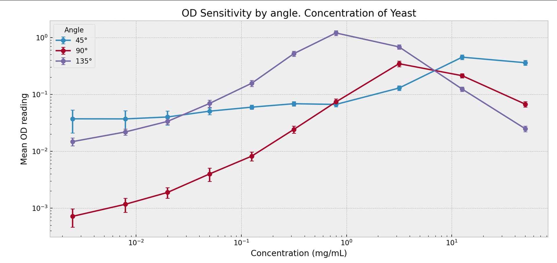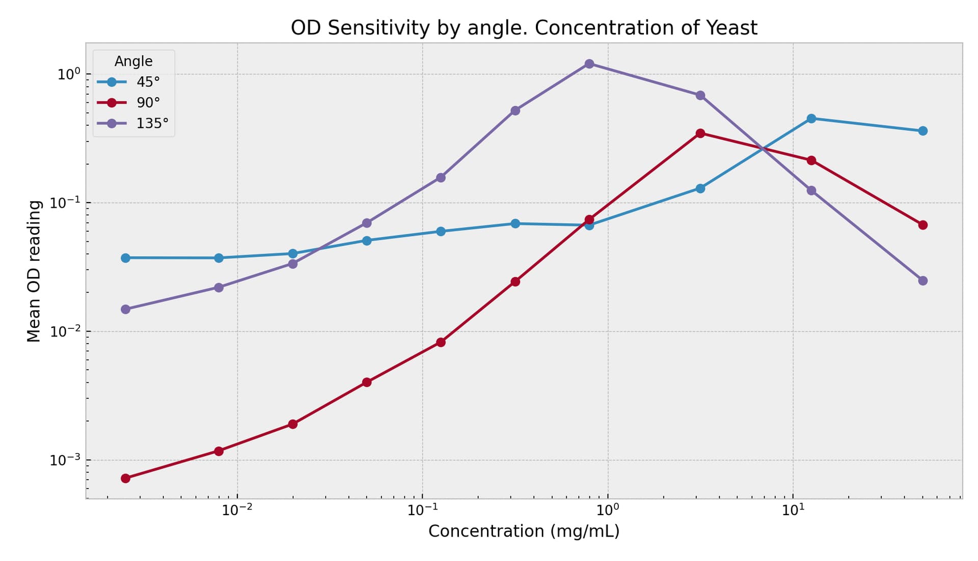 So the approach we take in the fusion is using the invertibility of the triplet to map to a concentration. To simplify first: if we had a single signal, for example the 90deg, then there exists a un-invertible problem: if you see 10^{-1} OD reading, then is that [10^{0}] or [10^{1.5}]? Both are possible. If we double the sensors, then we have a pair of sensors that may more often uniquely map to the single concentration. With three sensors, we get even more invertibility of the triplet.