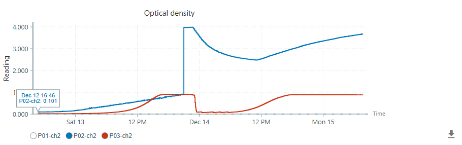 Despite having an older software version, we did not have this issue in majority of our experiments. However, recently carrier two experiments resulted with this problem in different a total of 6 reactors. We checked the IR excel log, but the intensity did not show any difference before and after the high sudden jump. In the picture below, I am showing only 3 of them.