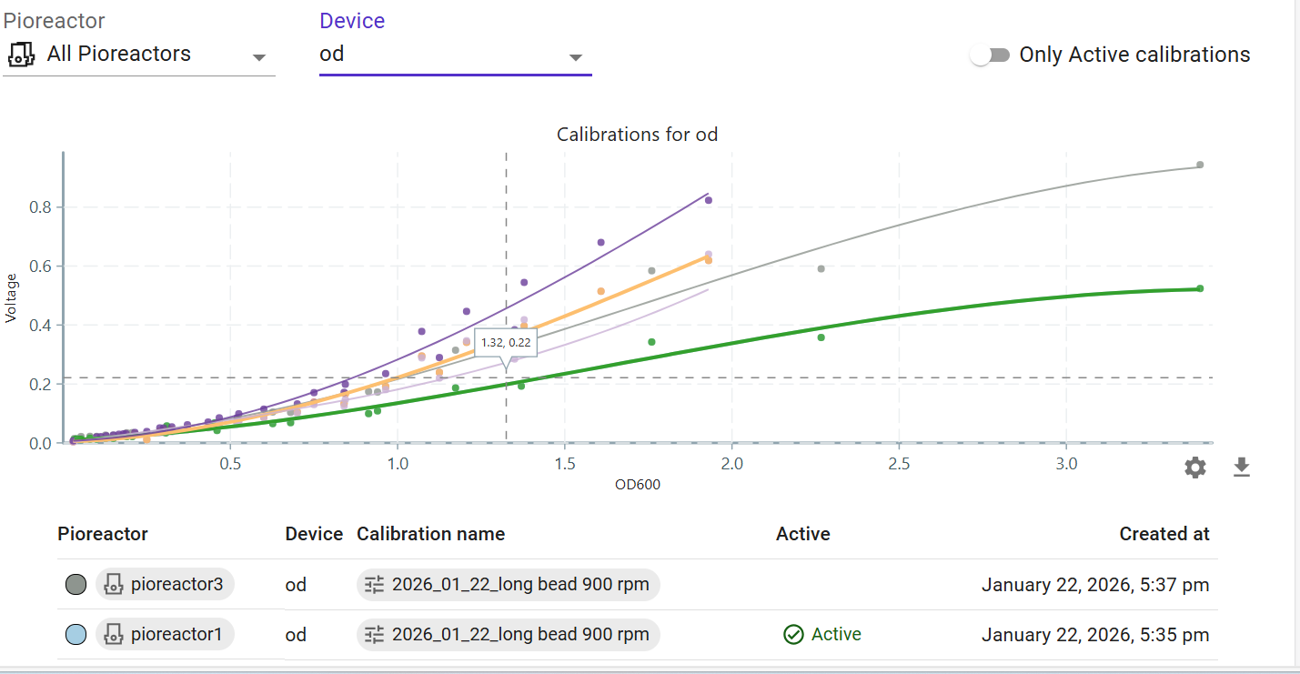 Also, my OD measurements seem to be incorrect. Based on the logs, it looks like the system isn’t using the calibration at all. I checked the calibration settings, and the calibrations are marked as active. I am attaching picture of the log. (This happened when the pioreactor version was 26.2.3)
