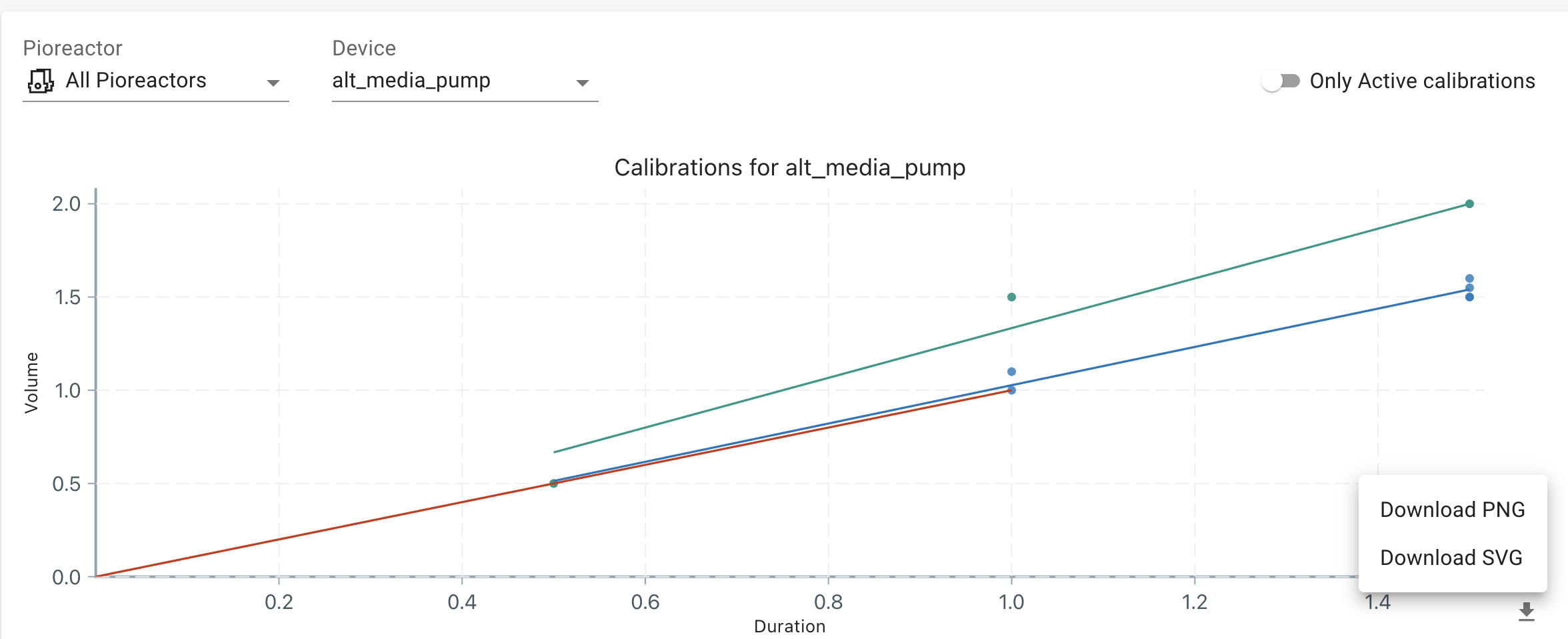 Is there anyway to quickly export the charts/graphs that are shown in the UI? I know I can get the full data logs and plot them in my favorite software, but for quick logging (such as in a lab enotebook) it would also be nice to quickly export the graphs.