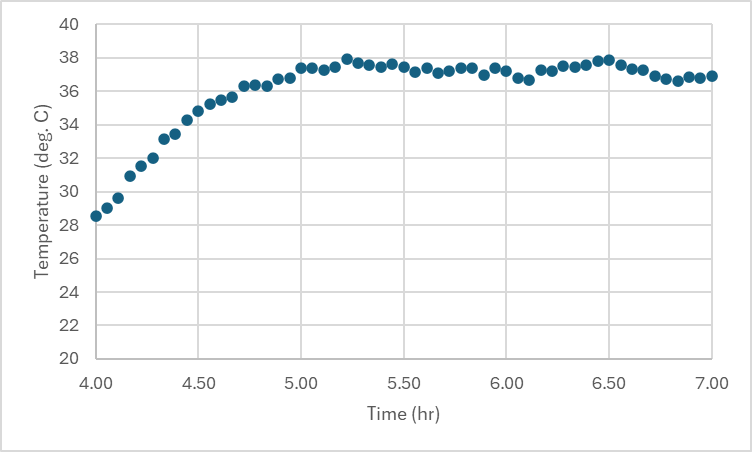 For instance, here, it takes almost an hour to move from ~28C to the target of 37C. Perhaps I messed up the installation of the heater or perhaps this is somewhat expected performance.