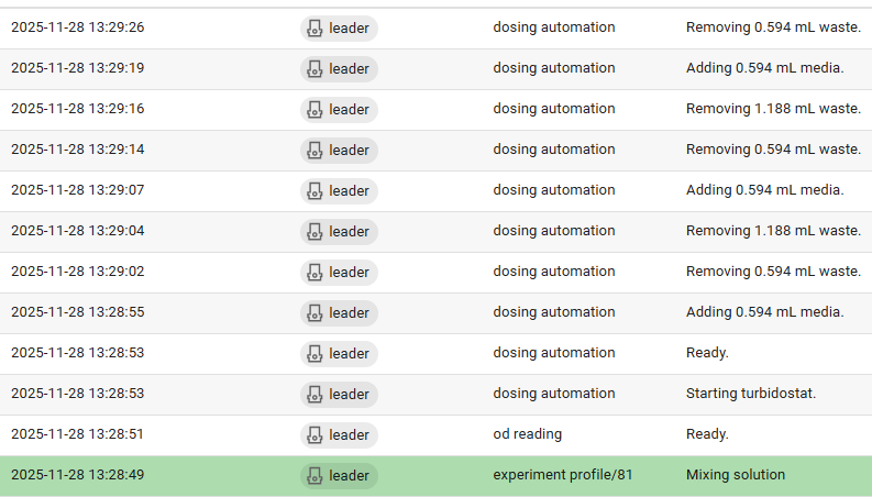 Unfortunately I haven’t been able to test using Turbidostat further because the UI is not recognize any removing of liquid. I tried this but no luck Pioreactor not accounting for removed volume in turbidostat automation and hitting maximal volume and cancelling automation